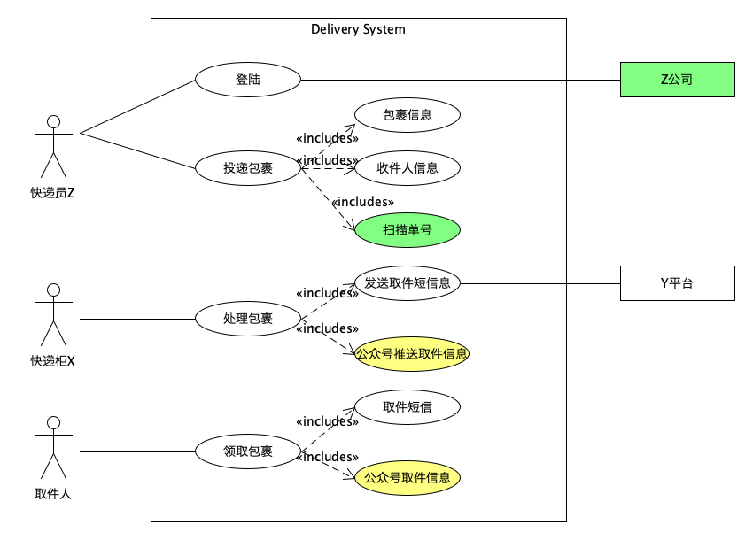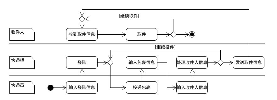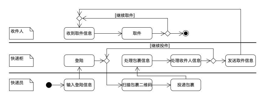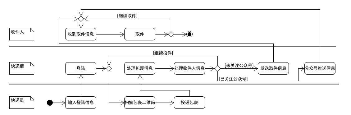 多泳道建模”投递员使用投递箱给收件人快递包裹”