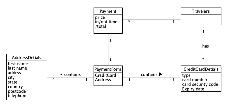 CreditCard (ID/PrimeryKey, TravelerID/ForeignKey, PaymentID/ForeignKey, Number, SecurityCode, ExpiryDate)